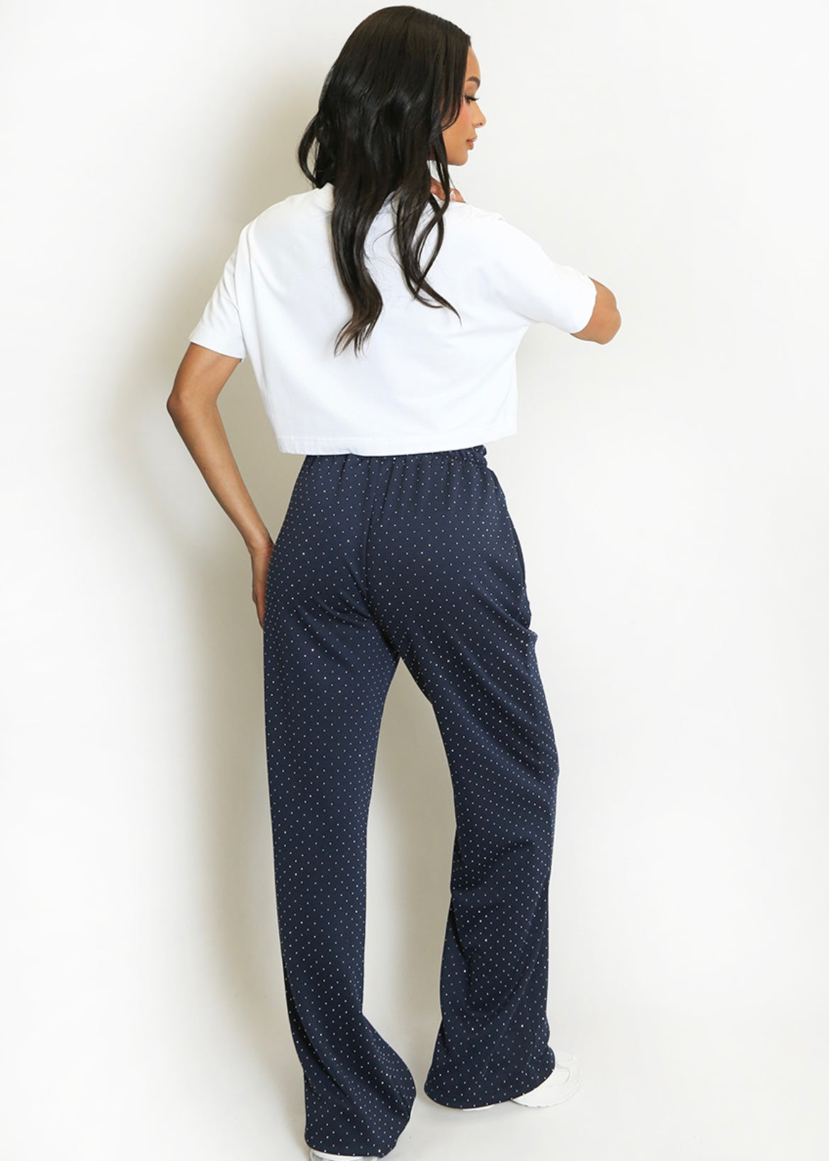 MILLIE | navy pintuck rhinestone wide leg trousers