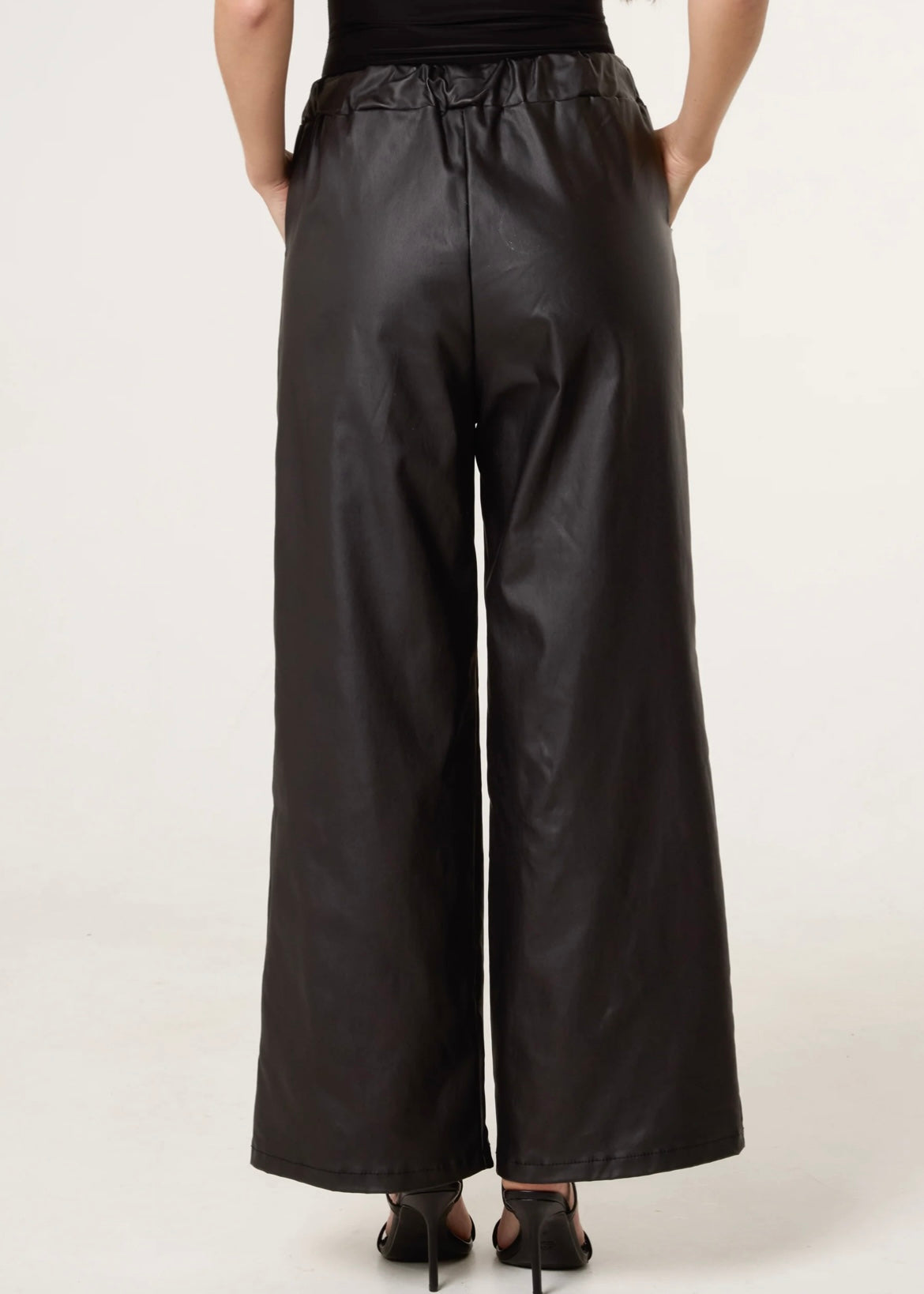 STEVIE | black PU wide leg magic stretch trousers
